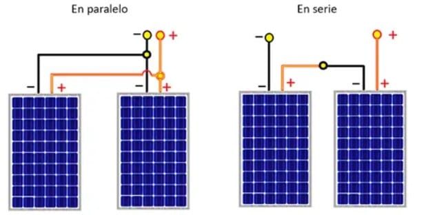 - La conexión no puede darse en serie porque, por regla, no se pueden sumar estos paneles de diferentes tensiones de corriente.